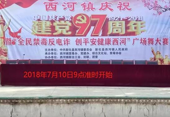 新化新闻网讯(通讯员 钟阳丽)7月10日,西河镇在雪峰社区文化活动广场举办庆祝建党97周年表彰大会暨 “全民禁毒反电信诈骗,创平安健康西河”广场舞大赛上千人参加。