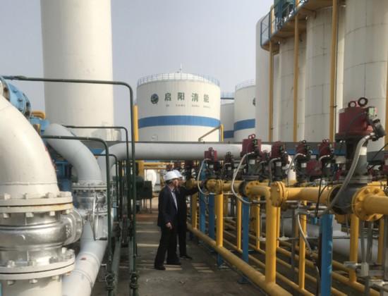 许晓晖博士(右)在启阳能源检查设备生产情况。山东省农科院供图
