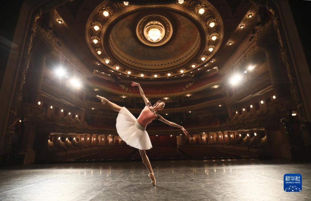 2019年5月24日,在巴西里约热内卢,中央芭蕾舞团演员方梦颖在里约热内卢市政剧院排练。中央芭蕾舞团携《大红灯笼高高挂》来到巴西,为当地民众献上带有浓郁中国元素的精彩表演。 新华社发(刘宇摄)