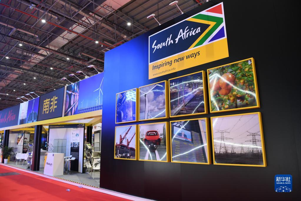 这是2018年11月5日在中国上海的中国国际进口博览会上拍摄的南非展馆。 新华社记者 沙达提 摄