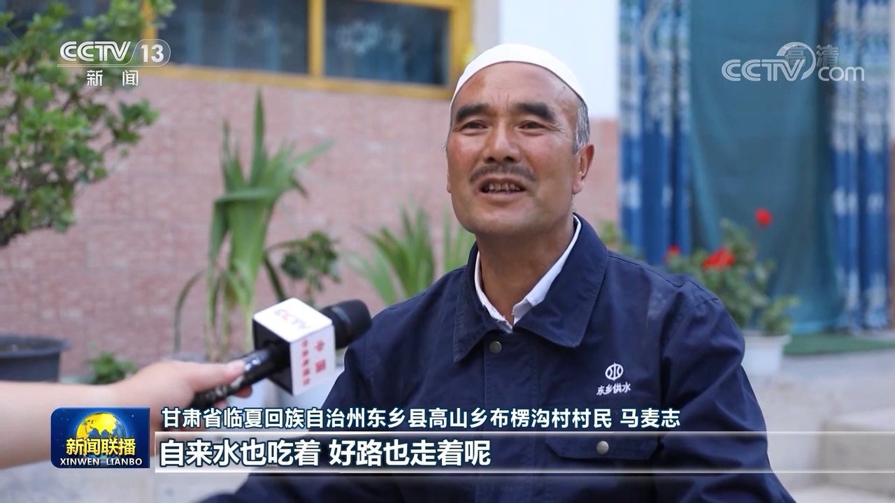 甘肃省临夏回族自治州东乡县高山乡布楞沟村村民 马麦志:我们现在好瓦房住着,自来水也吃着,好路也走着呢,现在的日子比油果子甜。