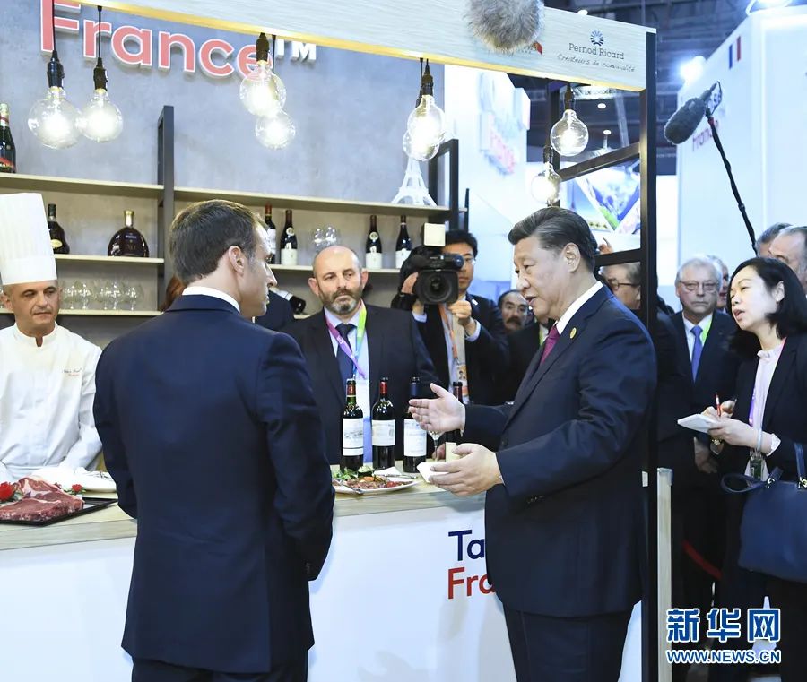 开幕式后,习近平在马克龙陪同下来到法国馆。马克龙请习近平品尝法国红酒和牛肉食品。习近平说:“法国牛肉、红酒在中国很受欢迎。”面对围拢在身边的20多位法国企业家,习近平发出诚挚邀请:“欢迎法国企业到中国来,中国市场大。”3年后的今天,中法双向投资快速增长,双边贸易额已超800亿美元,创历史新高。