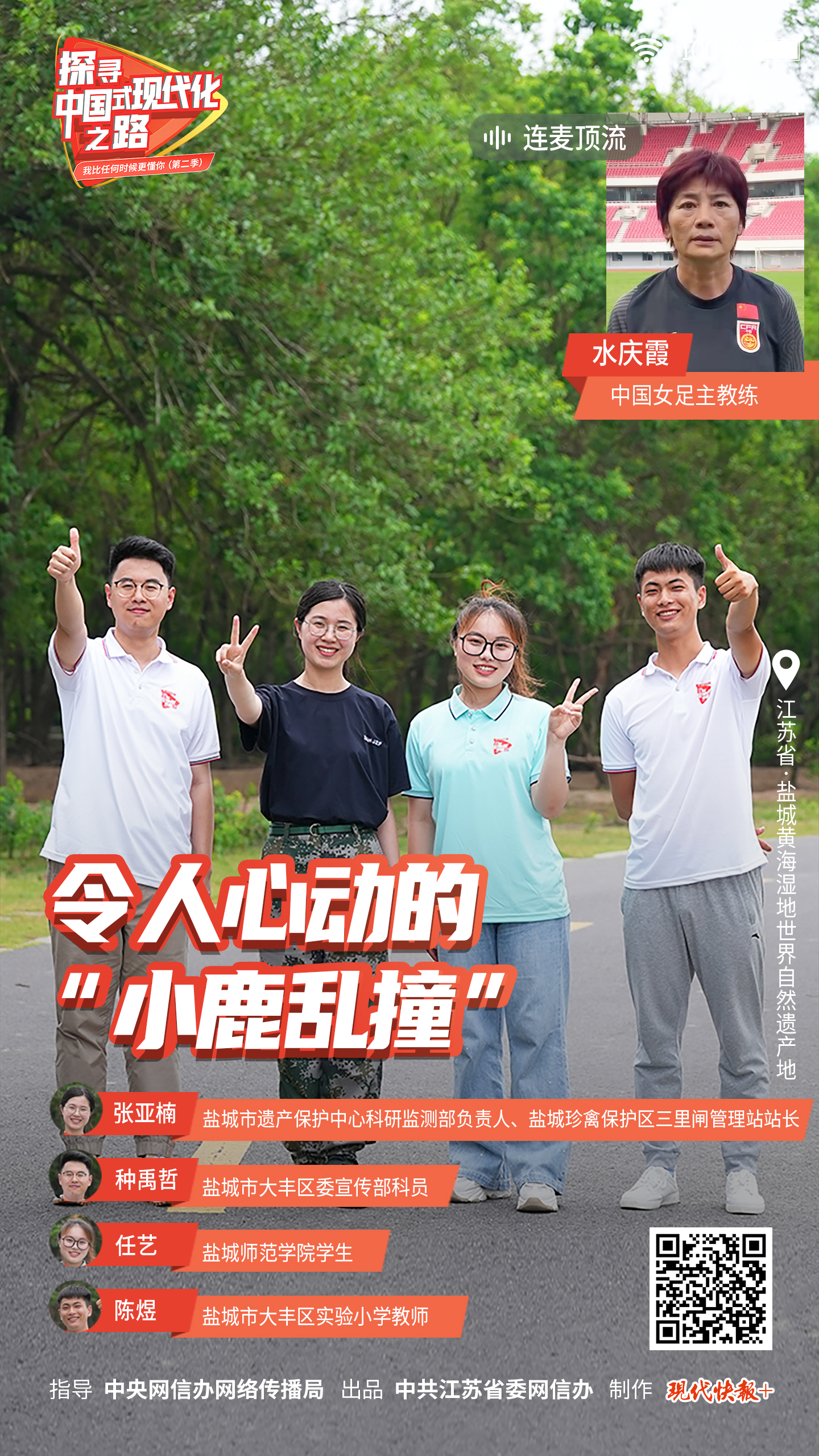 党的二十大擘画了以中国式现代化推进中华民族伟大复兴的宏伟蓝图。由中央网信办网络传播局指导,中共江苏省委网信办出品,现代快报+制作的“探寻中国式现代化之路——我比任何时候更懂你(第二季)”系列短视频燃情上线。30位顶流推荐官连麦互动,30个青青学习团沿着“大国重器”“绿水青山”“全面小康”“文化传承”四条线路,沉浸式打卡学习,探寻中国式现代化的生动实践。