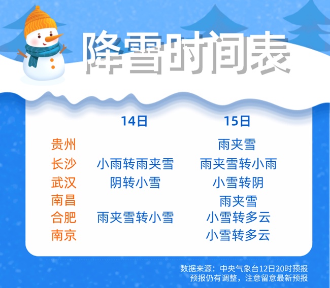 今天的雪只是“前菜”,今天夜间开始到15日,下雪的范围非常大!雪线将会逐渐南压到贵州中部-湖南-江西北部。雪花自北向南逐渐飘落,北方的雪集中在明后天,南方则在15日前后。
