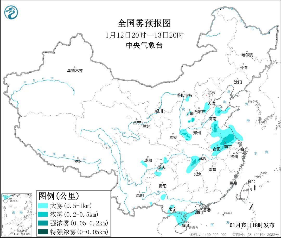 12日夜间至13日上午,河南东南部、山东北部和西南部、江苏大部、安徽东北部和中部、湖北东南部、湖南北部、四川盆地西南部、广西南部等地的部分地区有大雾,局地有能见度不足200米的强浓雾,大家行车一定要注意保持车距,注意交通安全。之后在冷空气影响下,雾将自北向南逐渐消散。