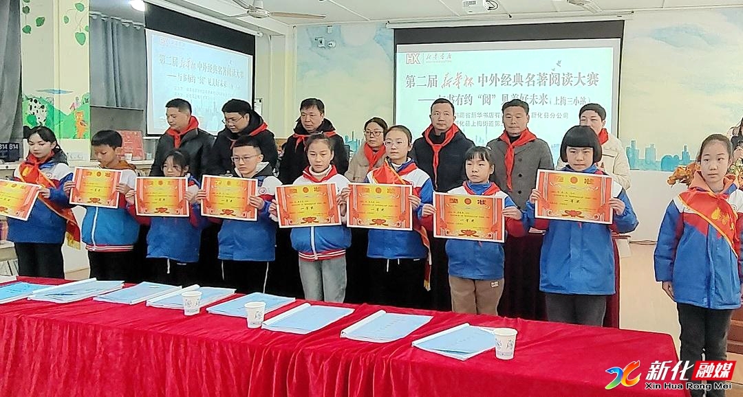 新化新闻网讯 (记者 杨尚勤)12月19日,第二届新华杯中外经典阅读大赛(上梅三小站)落幕,对优秀班级、学生、指导老师进行表彰。县教育局、新华书店新化分公司、上梅街道中心学校、上梅三小有关负责人参加。