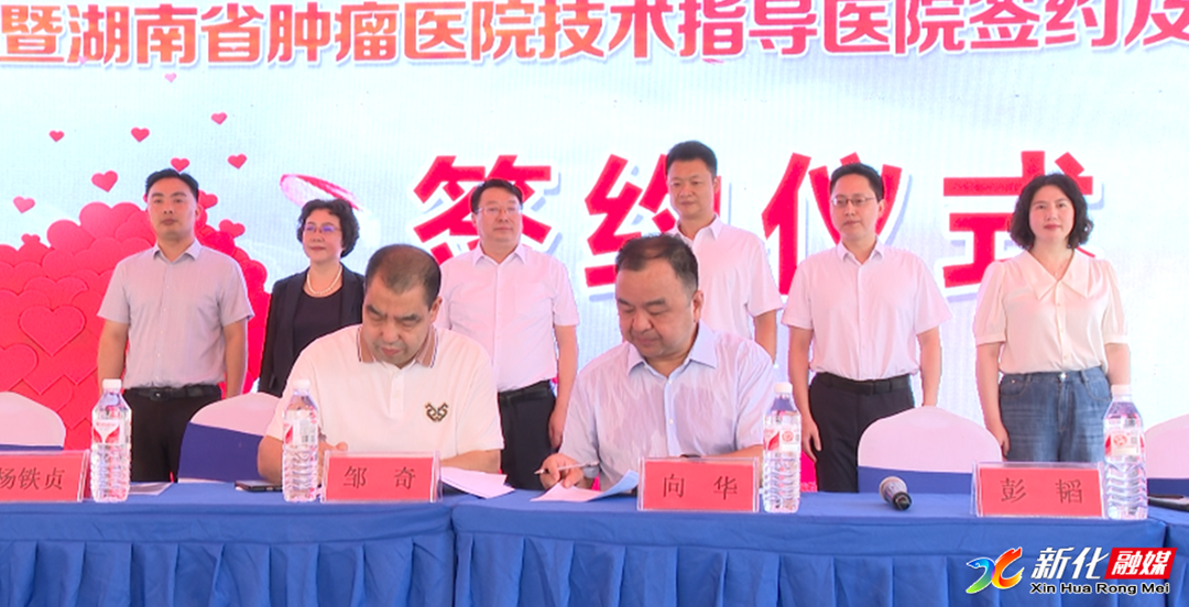 当天,省肿瘤医院与新化县中医医院签订对口帮扶、技术指导协议,并进行授牌。