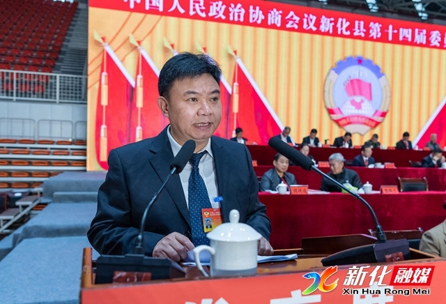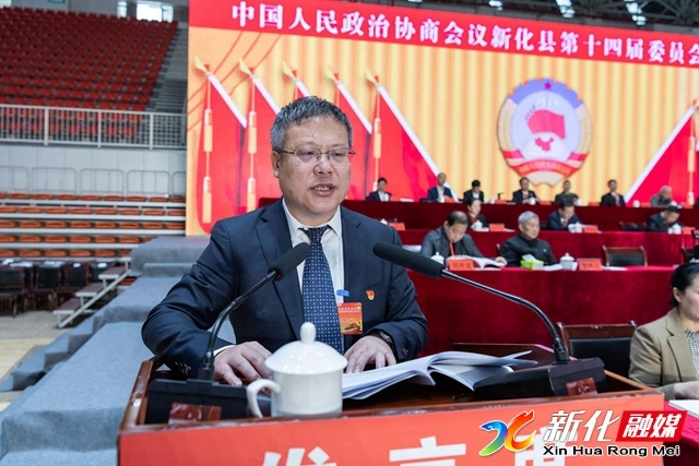县政协主席李笃成代表新化县政协第十四届委员会常务委员会向大会作工作报告。